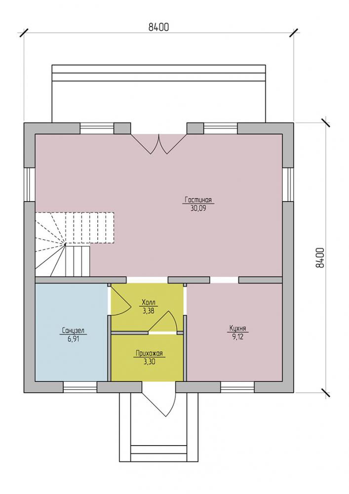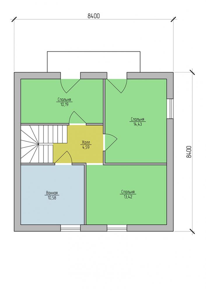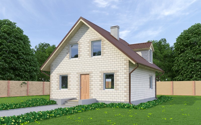 В доме на первом этаже находятся прихожая, холл, санузел, кухня и гостиная. На втором этаже находятся холл, ванная и 3 спальни.