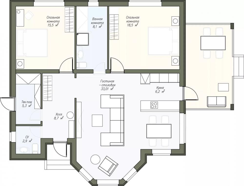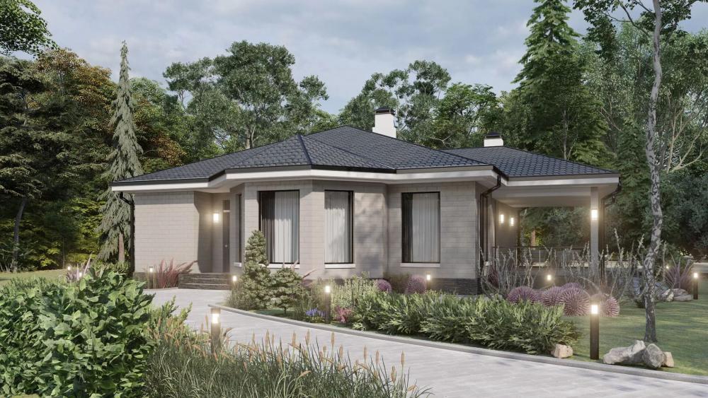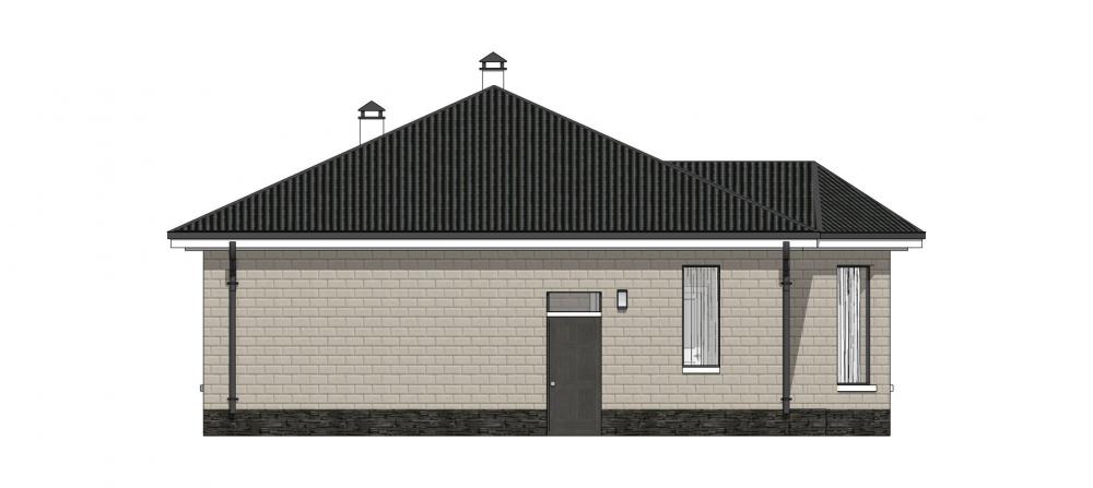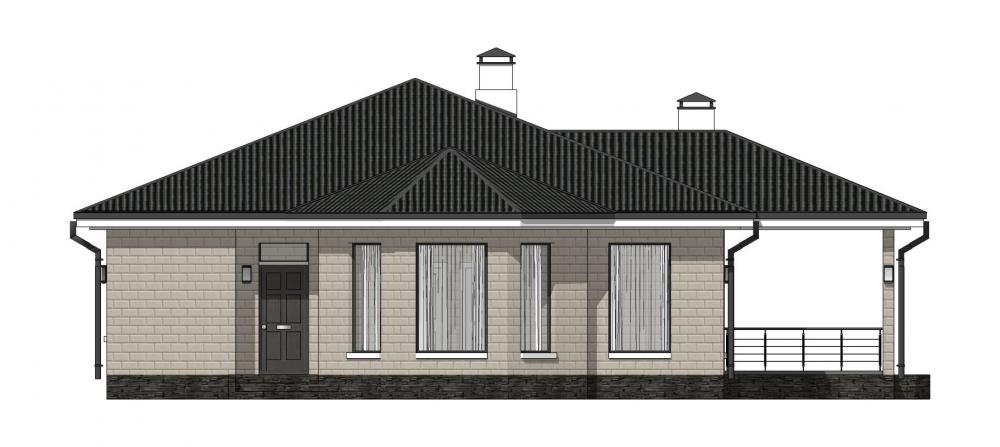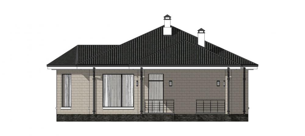 Стены выполнены из комбинации двух фактур. Цоколь - пигментированный теплоблок лещатка (скала), стены - гладкий итальянский под покраску.